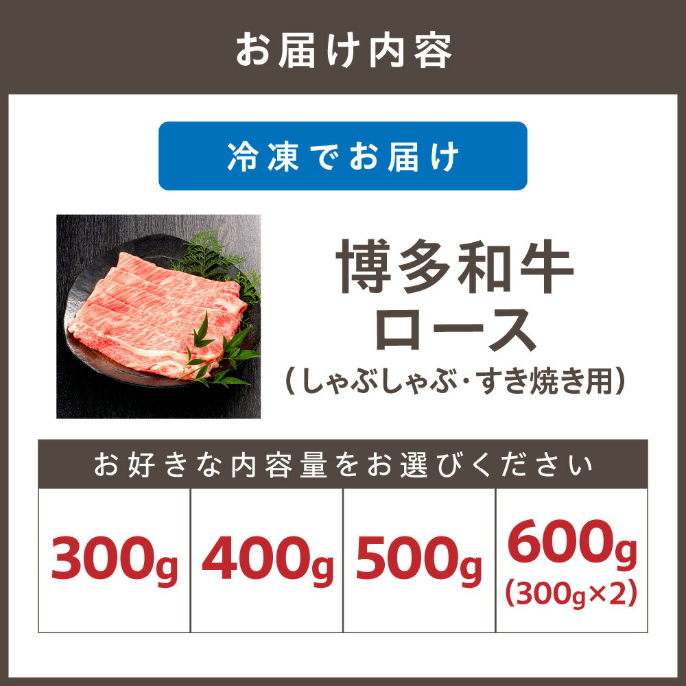 - 【ふるさと納税】<選べる内容量>博多和牛ロース 300g 400g 500g 600g(しゃぶしゃぶ・すき焼き用)【伊豆丸商店】送料無料 黒毛和牛 ロース すき焼き しゃぶしゃぶ 柔らかい ジューシー 贅沢 ごちそう