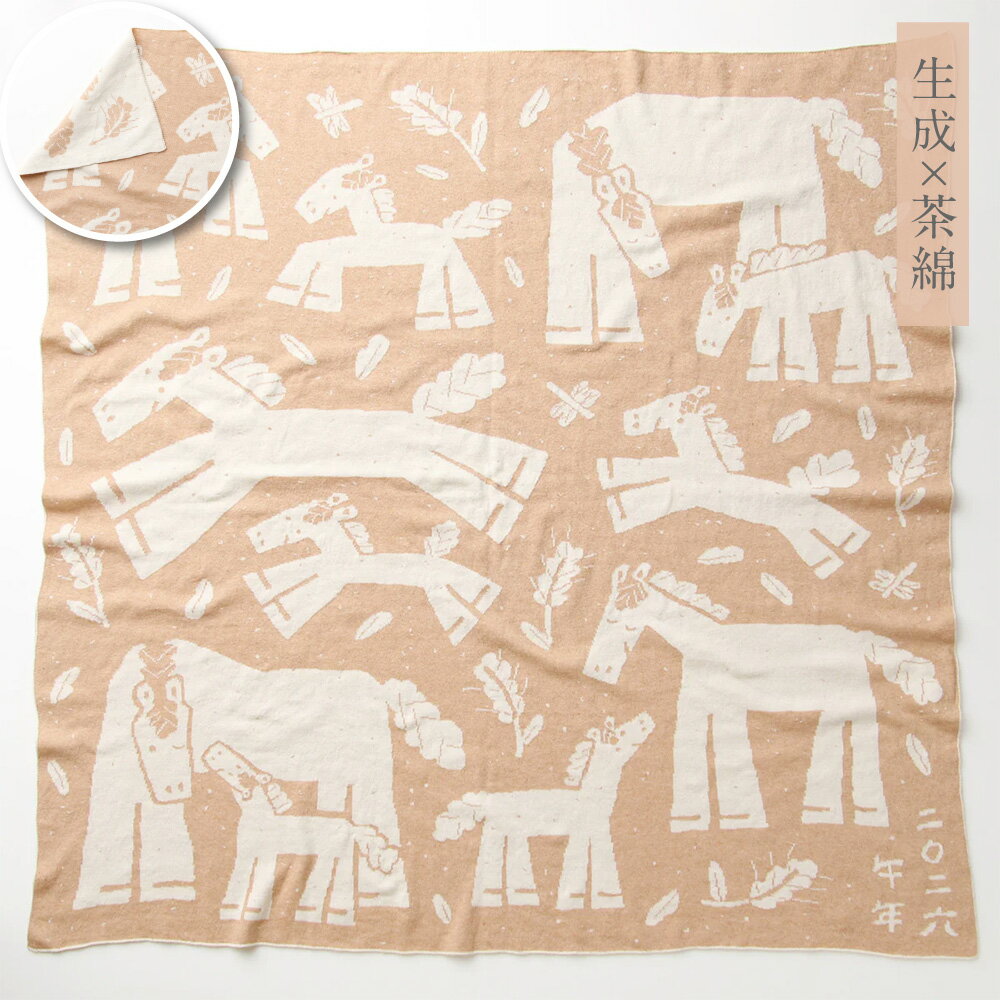 - 【ふるさと納税】【7営業日程度で発送】2026 干支柄(午年)アフガン <カラーが選べる>生成×はとばねずみ or 生成×茶綿|国産 日本産 新生児 出産祝い ギフト 赤ちゃん オーガニックコットン ベビーギフト 綿100% お祝い 出産準備 送料無料 大阪府 阪南市