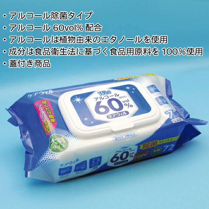 - 【ふるさと納税】ケアウィル 除菌 アルコール 60% ウェットティッシュ 72枚 蓋付きピロータイプ