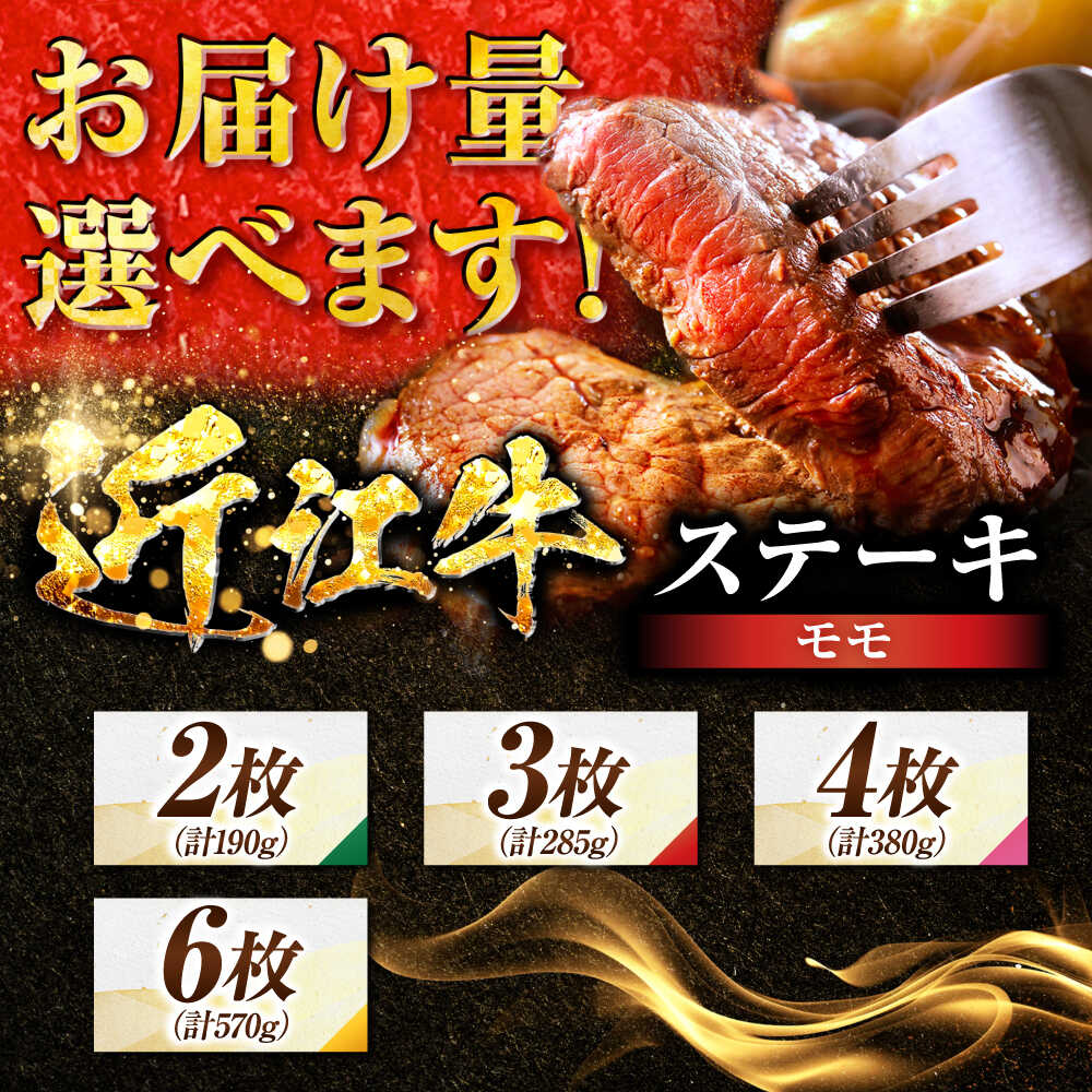 - 【ふるさと納税】【選べる枚数】近江牛モモステーキ 2~6枚(1枚:約95g) / 牛肉 国産 近江牛肉 肉 赤身 霜降り 黒毛和牛 ステーキ肉 和牛 牛 国産牛 ブランド牛 グルメ 高級肉 ステーキ 赤身肉 モモ肉 滋賀県 / 栗東市 / 有限会社 岡山[BIBE057]