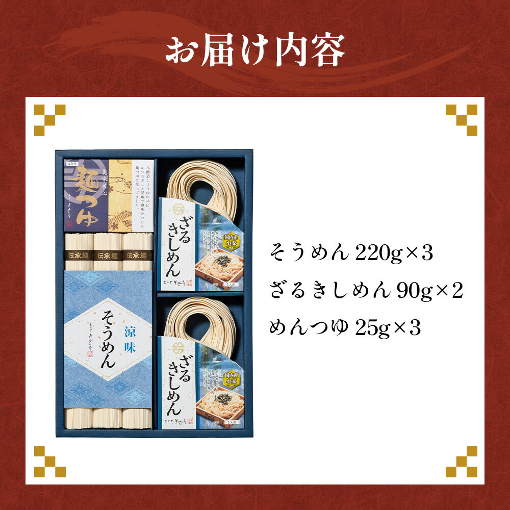 - 【ふるさと納税】きしめん お得な詰め合わせセット(そうめん・ざるきしめん・めんつゆセット)915g【春夏限定】 / 麺類 素麺 きし麺 つるつる しこしこ 手折めん のどごし さわやか かつお 昆布だし めんつゆ付 送料無料 愛知県 No.278