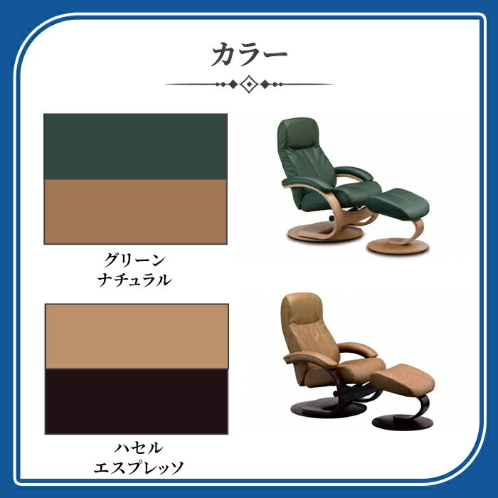 【ふるさと納税】パーソナルチェア フィヨルド ウノ | グリーン/ナチュラル ハセル/エスプレッソ フットスツール付 | シモンズ SIMMONS simmons チェア 椅子 イス いす 牛革 360°回転機能付 お洒落 おしゃれ 家具