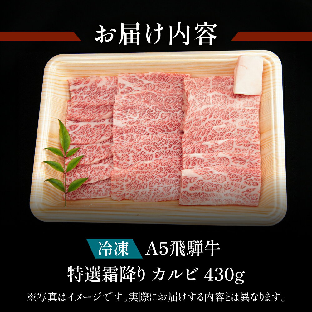 - 【ふるさと納税】A5 飛騨牛 A5飛騨牛 特選霜降りカルビ 430g【冷凍】 部位お任せ 訳あり 焼き肉 牛肉 焼肉 肉 和牛 人気 ブランド牛 肉ギフト 国産 贈答品 焼き肉用 ギフト 和牛 25000円 2万5千円 岐阜県 下呂市