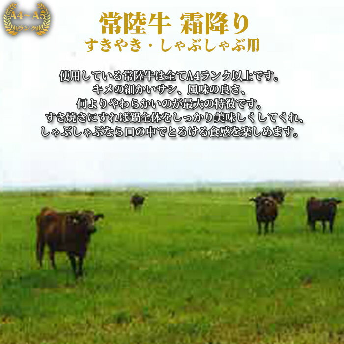 - 【ふるさと納税】【常陸牛】すきやき・しゃぶしゃぶ用(カタ、カタロース、ロース)約800g<茨城県共通返礼品> / A4ランク以上 すきやき しゃぶしゃぶ 約800g 黒毛和牛 カタ カタロース ロース 国産 牛肉 やわらかい 旨み 風味 薄切り 食べ比べ 送料無料 茨城県 No.452