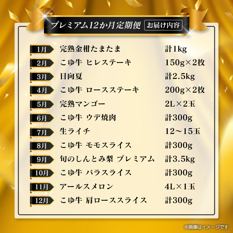 - <年末年始限定!!>宮崎フルーツ&黒毛和牛 定期便 12ヵ月 1年間 ローカル ブランド マンゴー ライチ メロン 梨 日向夏 ステーキ ヒレ ロース 焼肉 すき焼き しゃぶしゃぶ 数量限定 期間限定 2026年1月5日まで!【F158】
