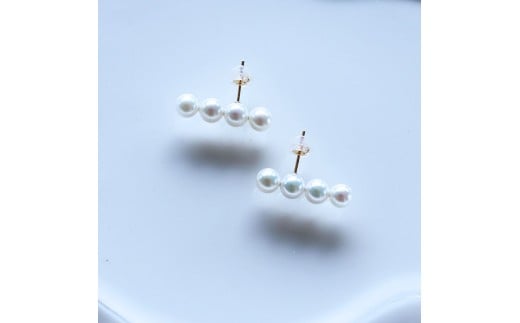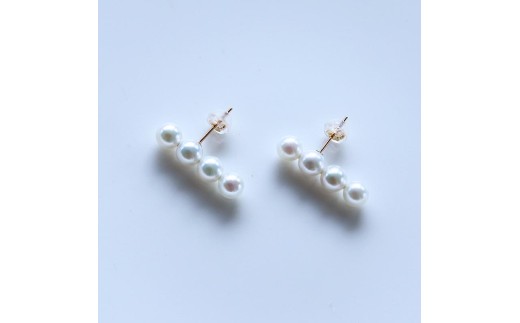 パール優美 真珠 ピアス K18 5.0ミリ ~ 6.0ミリ アクセサリー パール ゴールド イエローゴールド ホワイトピンク 三重県 伊勢 志摩 プレゼント 人気 クリスマス バレンタイン ホワイトデー カジュアル レディース シンプル / アコヤ真珠 5-6 ミリ ホワイトピンク 4粒タイプ 数粒ラインピアス (K18YG)
