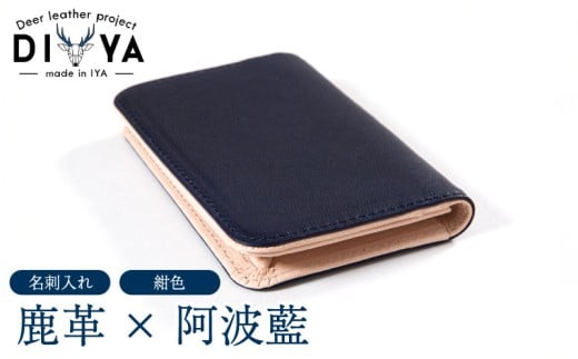 - 名刺入れ 藍染 国産 鹿革 紺色 手作り カード ポケット マチあり 藍染め 阿波藍 間伐材の布 カードケース 軽量 おしゃれ ファッション 小物 アクセサリー ビジネス ギフト プレゼント 祖谷 ジビエ みよし 徳島県 三好市 DIYA