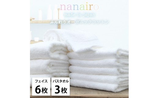 【フェイス6枚・バス3枚】しなやかオーガニックコットンタオルセット(ナナイロ)F6B3-WH
