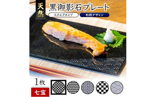 天然黒御影石 スクエアプレート 1枚 【和柄彫刻(七宝)】 SE0244