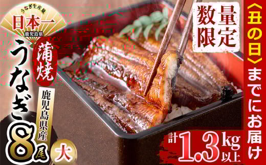 - 【丑の日までに配送】鹿児島県産 伊崎田のうなぎ蒲焼 大<170g以上>× 8尾(計1.3kg以上) e4-005-us