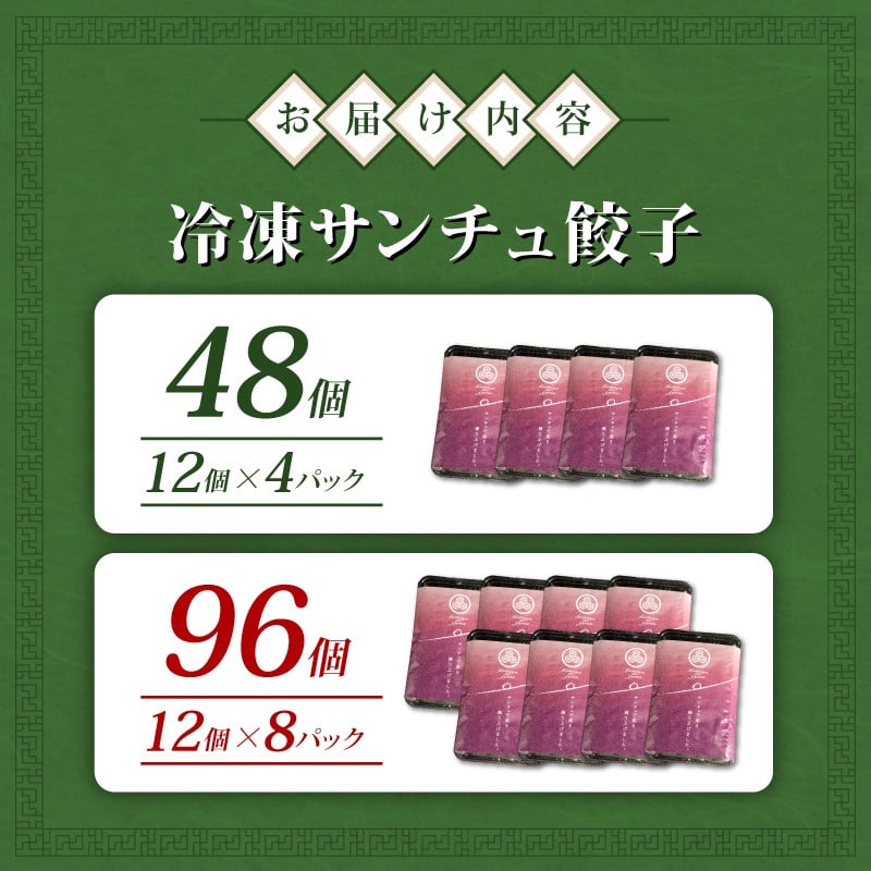 サンチュ 餃子 48個 / 96個 冷凍 小分け 国産 豚肉 サンチュ 野菜 たっぷり にんにく 少なめ 手軽 絶品 晩ごはん 家族 子ども 弁当 惣菜 おかず おつまみ 簡単調理 ぎょうざ ギョーザ 焼き餃子 水餃子 ジューシー シャキシャキ パリパリ もちもち 千葉県 旭市 有限会社かまや kmy