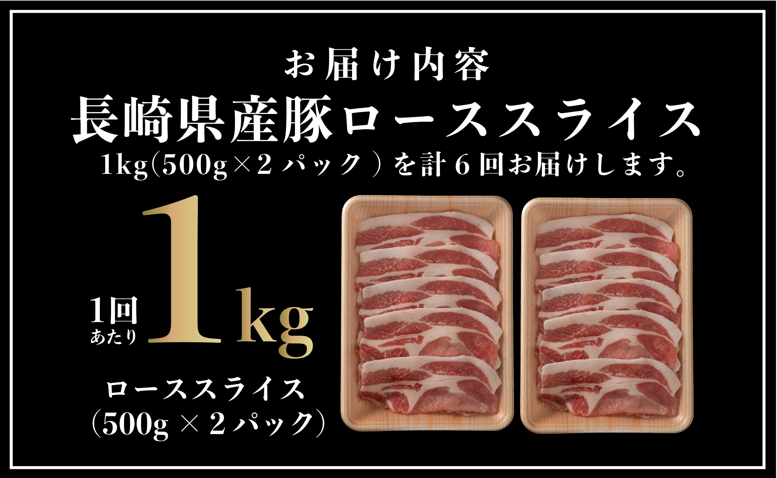 - 【6回定期便】 長崎県産 豚肉 ローススライス 計1kg (500g×2) 総計6kg 定期便 小分け 冷凍 豚肉 しゃぶしゃぶ すき焼き ぶたにく 国産豚 6回 定期便 B583