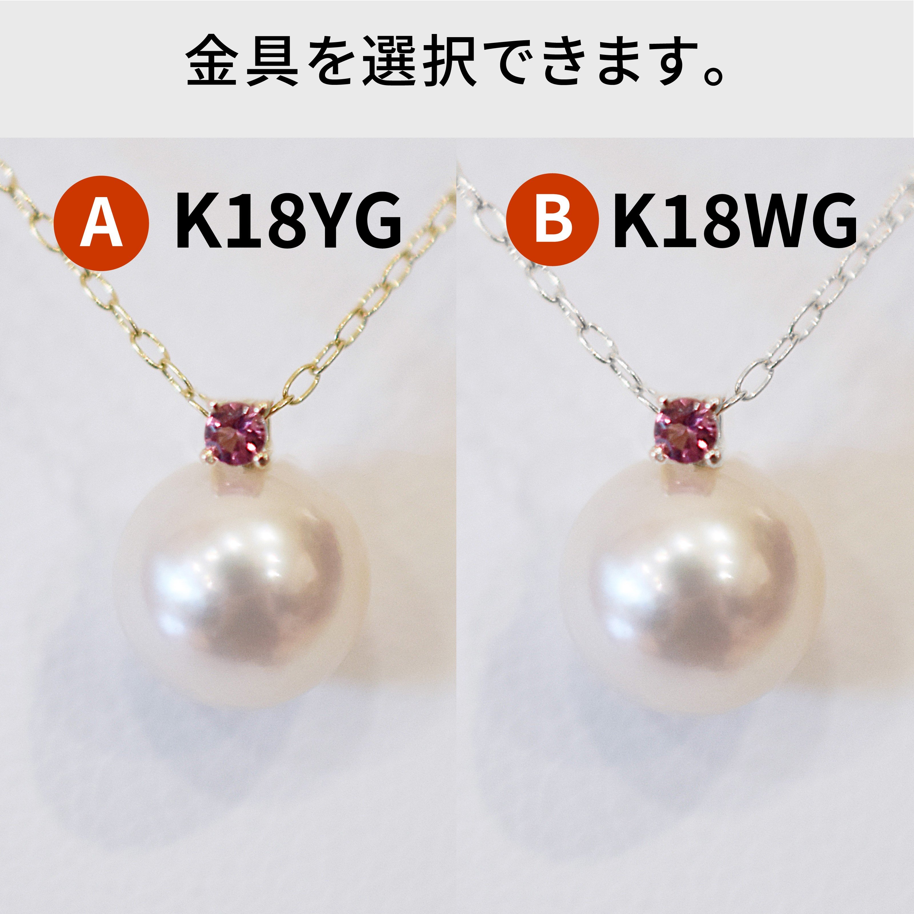 S101-528_あこや真珠 ペンダント ネックレス 8mm - 8.5mm 天草 熊本 ホワイトピンク 誕生石 10月 ピンクトルマリン 半貴石 本真珠 K18