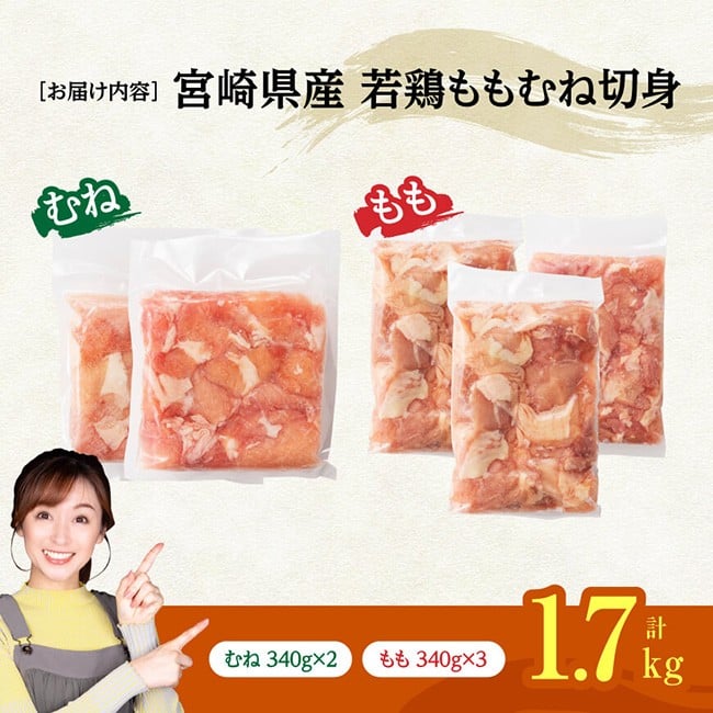- 発送時期が選べる!宮崎県産若鶏 ももむね切身 計1.7kg(各340g×3) 【 宮崎県産 真空パック 国産 九州産 鶏肉 若鶏 肉 とり もも むね モモ肉 ムネ肉 宮崎県 川南町 送料無料 】