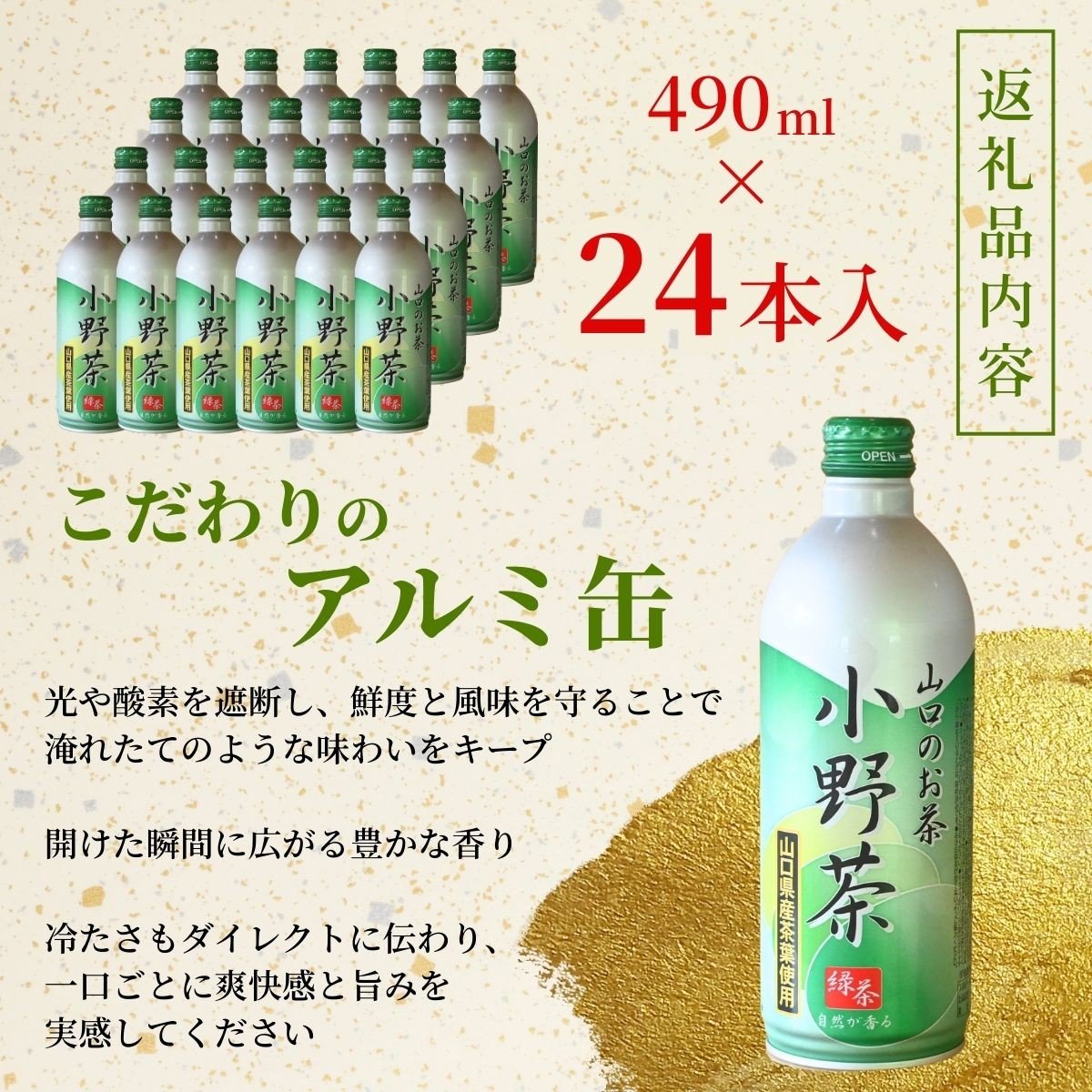 お茶 【山口のお茶】小野茶 大(490ml) 24本入り 【お茶 オチャ おちゃ 小野茶 小野チャ 小野ちゃ おの茶 オノ茶 山口県 小野地区 アルミ缶 セット 飲料 飲み物 ドリンク 食事 リフレッシュ 茶葉 ご当地飲料 ご当地ドリンク 贈り物 自宅用 返礼品】