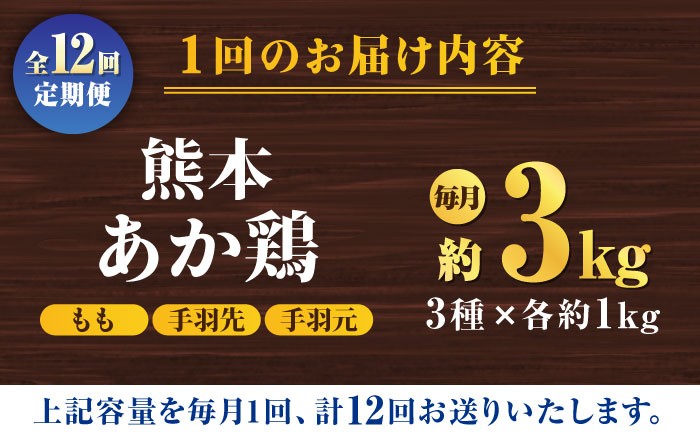 - 【12回定期便】熊本あか鶏 3種食べ比べセット(もも 手羽先 手羽元)各1kg【やまうちフード株式会社 熊本営業所】 熊本県 特産品 九州産 鶏肉 [ZAB020]