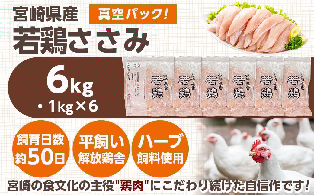 宮崎県産若鶏 ささみ(6kg)_13-G301_(都城市) 若鶏 鶏肉 真空 ささみ 宮崎県 平飼い ハーブ ふっくら ジューシー サラダ メイン 冷凍 便利 保水性 やわらか ふっくら ジューシー