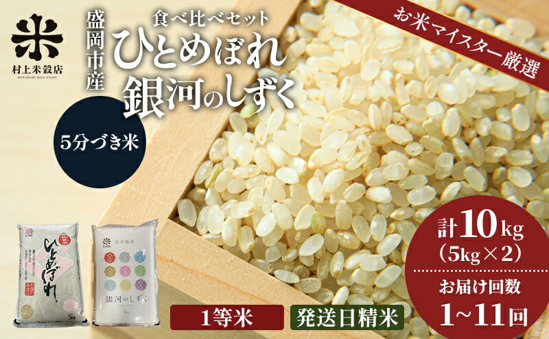 【ふるさと納税】銀河のしずく《特A 7年連続獲得中!》&ひとめぼれ食べ比べセット【5分づき精米】 選べる発送回数 5kg×2 / 1回~11回 令和7年産 盛岡市産◆新鮮!発送日精米・1等米のみを使用したお米マイスター監修の米◆