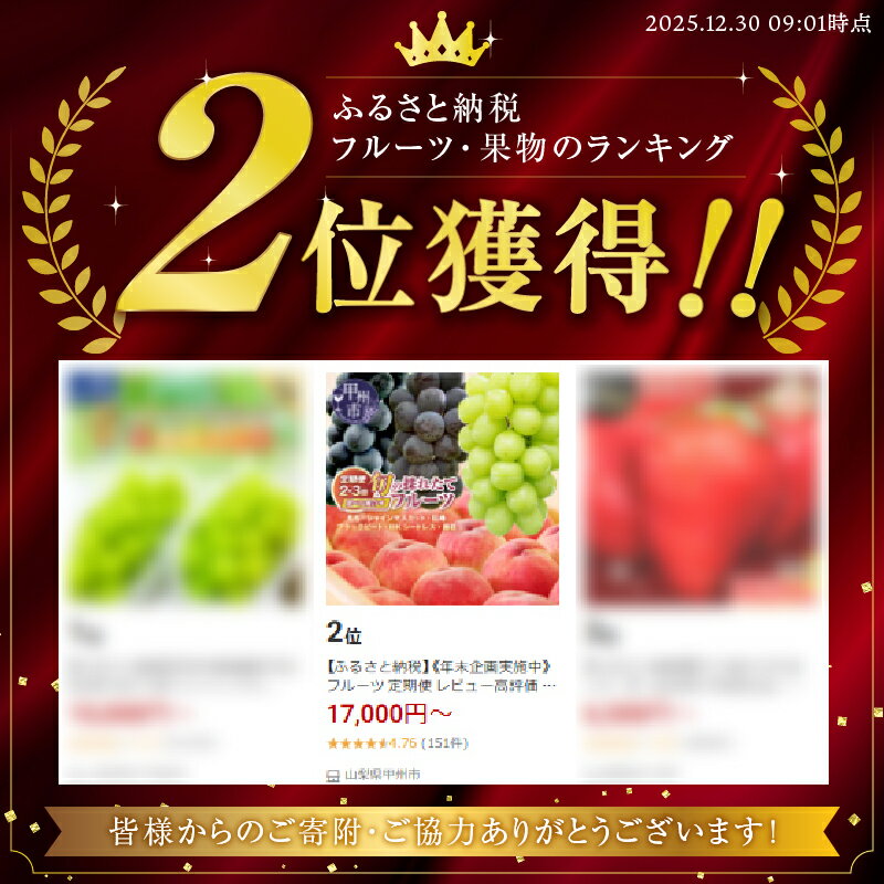 - 【ふるさと納税】《迎春企画実施中》 フルーツ 定期便 レビュー高評価 2026年 シャインマスカット 桃 ぶどう お試し 選べる 回数 組み合わせ 巨峰 ブラックビート BKシードレス 藤稔 果物 冷蔵 新鮮 ランキング 高評価 数量限定 まずはお試し おすすめ 山梨県 甲州市 (HO)