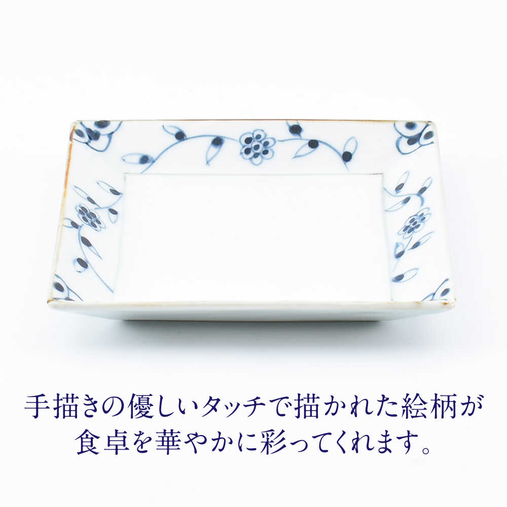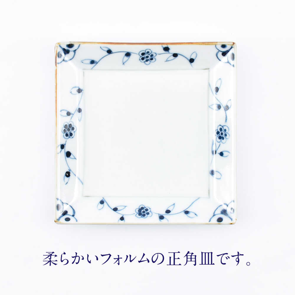 - 【ふるさと納税】【ロマ佐賀】【有田焼】つる花唐草4.5寸角皿4枚組 / 焼き物 磁器 / 佐賀県 / 株式会社まるぶん[41APCD078]