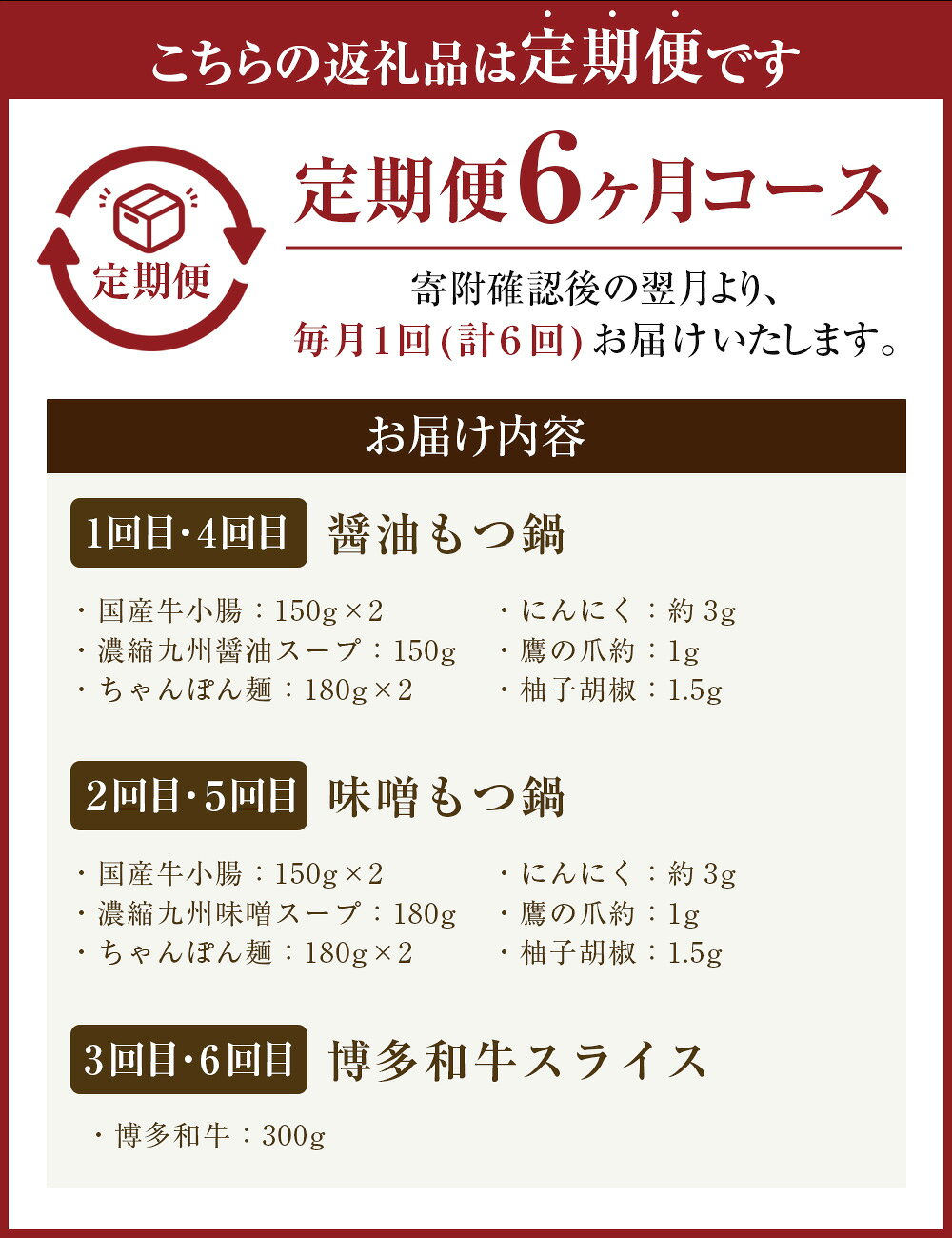 - 【ふるさと納税】【6ヶ月定期便】博多の名物「国産牛 上ホルモン もつ鍋」と「博多和牛スライス」3種 6回 定期便 もつ鍋 鍋 ホルモン 牛小腸 牛肉 ザブトン 肩ロース すき焼き しゃぶしゃぶ 国産牛 醤油 味噌 鍋 お取り寄せ 福岡 冷凍 送料無料