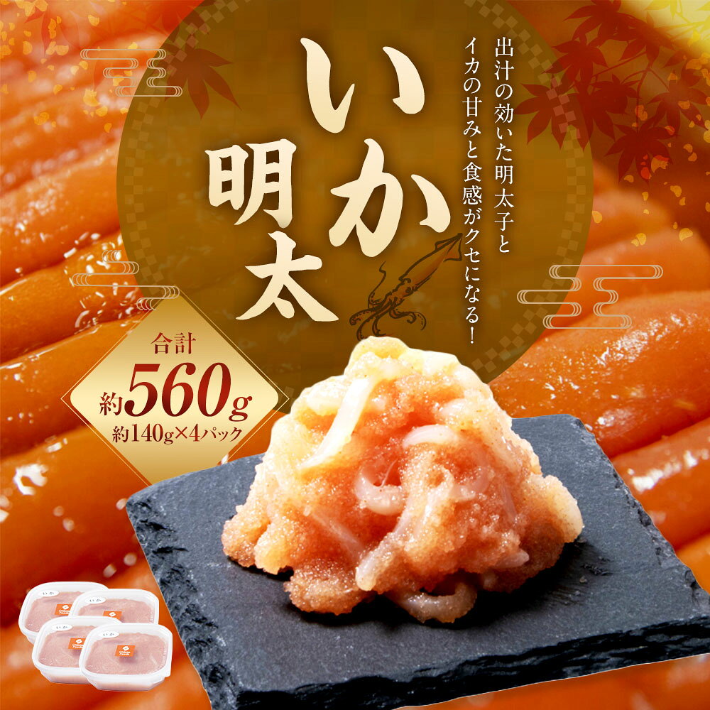 【ふるさと納税】いか明太 計560g(140g×4パック) イカ いか めんたいこ 明太子 魚卵 魚介類 水産物 ごはんのお供 ご飯のお供 トッピング 小分けパック 冷凍 国産 福岡県 直方市 送料無料