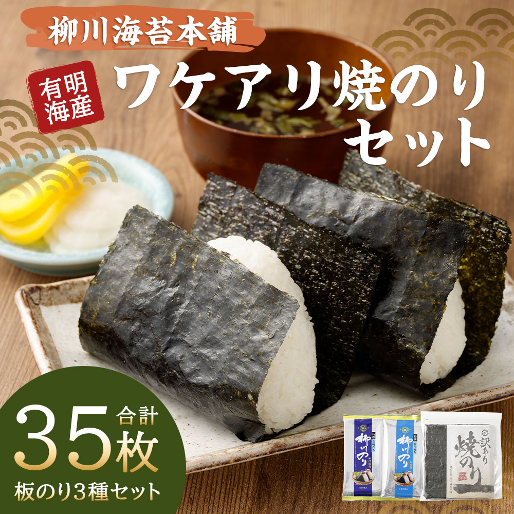 【ふるさと納税】柳川海苔本舗ワケアリ焼のりセット【合計35枚】 板のり 焼海苔(30枚) 塩海苔・味付のり(各2.5枚(半切5枚)×1袋) 乾のり 有明海産 のり 海苔 焼き海苔 焼きのり やき海苔 味海苔 乾海苔 詰め合わせ 訳あり 国産 福岡県 柳川市 送料無料
