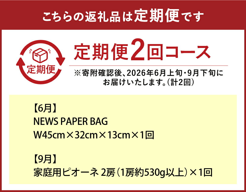 - 【ふるさと納税】【年2回定期便】NEWS PAPER BAG(INDIGO)+家庭用ピオーネ2房(1房約530g以上) セット ニュースペーパーバッグ 大型ショルダーバッグ 鞄 カバン かばん ぶどう 葡萄 フルーツ くだもの 岡山県 倉敷市 送料無料 【2026年6月上旬~9月下旬まで発送予定】