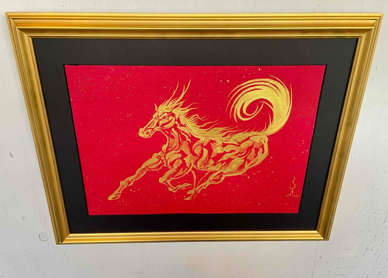 - 【ふるさと納税】現代水墨画家 白道「丙午 龍馬」赤ゴールド|絵画 アート インテリア 手描き 一筆 龍 日本画 現代アート ハンドメイド作品 水墨画 かっこいい 作品 縁起 風水 芸術 2026年 午年 うま 馬 干支 [mt2125]