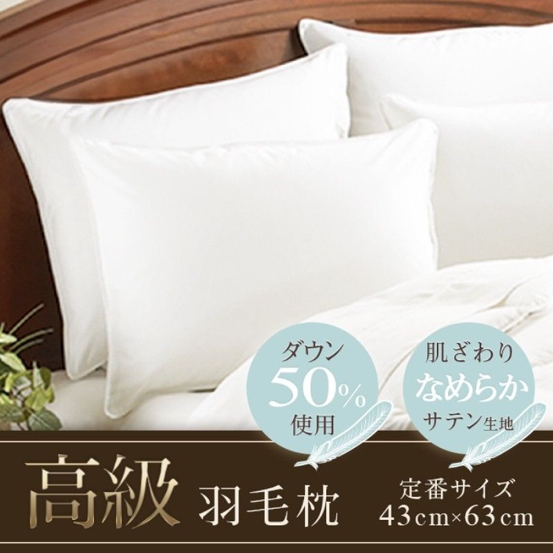 - 【ふるさと納税】 まくら ダウンピロー 枕 ダウン50% スモールフェザー50% 羽毛 羽根 綿100% 天然素材 サテン生地 弾力性 ふわふわ 吸放湿性 寝具 快眠 睡眠 熟睡 快適 プレゼント 贈り物 贈答 送料無料 山梨県 忍野村