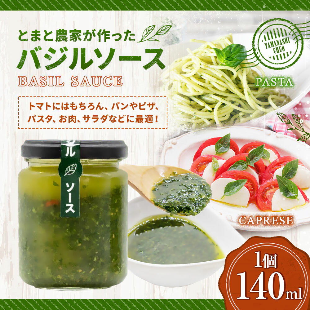 - 【ふるさと納税】 とまと農家が作ったバジルソース 140ml 1個 バジル ソース バジルソース 塩分控えめ 調味料 イタリアン トマト パン ピザ パスタ お肉 サラダ トマト舎たかの 山梨県 中央市 送料無料 【2026年4月下旬迄発送予定】
