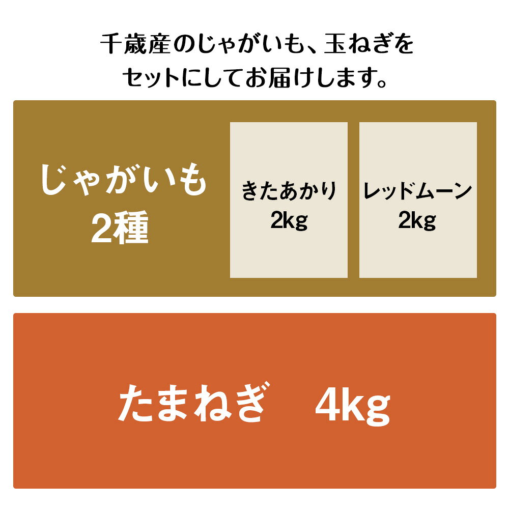 - 【ふるさと納税】【2026年発送】産地直送「越冬じゃがいも」食べ比べ2種各2kg&「たまねぎ」4kgセット《 土居ファーム 》 玉葱 いも 芋 レッドムーン キタアカリ じゃがいも 越冬 野菜 千歳 北海道【北海道千歳市】ギフト ふるさと納税