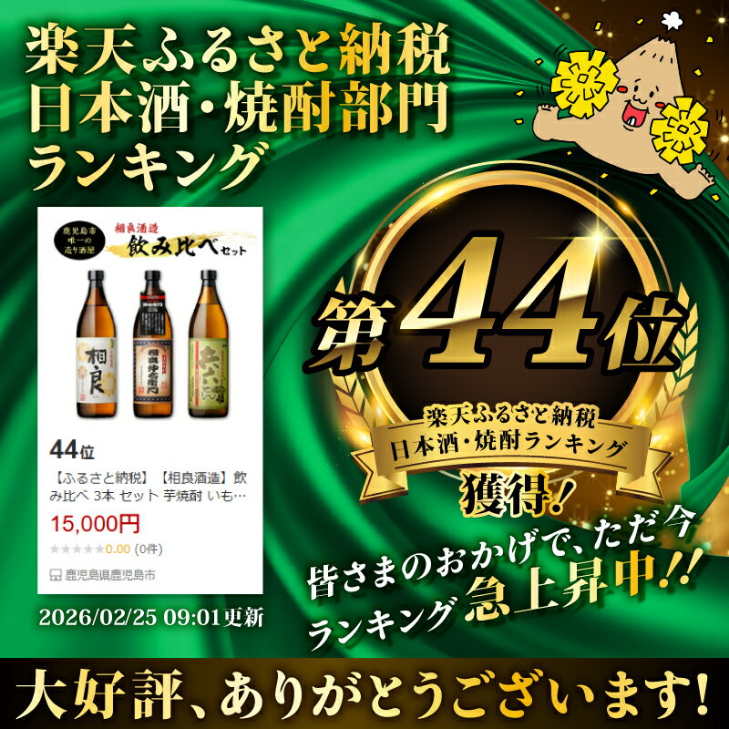 - 【ふるさと納税】【相良酒造】飲み比べ 3本 セット 芋焼酎 いも焼酎 味くらべ 鹿児島限定 お土産 ご当地 鹿児島県産 相良仲右衛門 黒麹 30度 相良 白麹 25度 兵六どん 黄金千貫 五合瓶 相良酒造 鹿児島 おすすめ ランキング プレゼント ギフト
