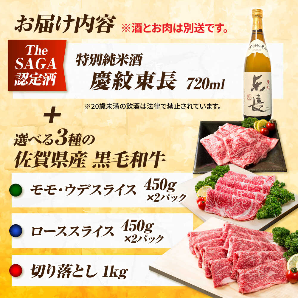 - 【ふるさと納税】【晩酌セット 梅コース】選べる佐賀県産黒毛和牛 & 特別純米酒 慶紋東長 720ml / 佐賀産和牛 白石 [IZZ037]