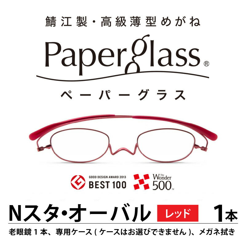 【ふるさと納税】鯖江製・高級薄型めがね『Paperglass(ペーパーグラス)Nスタ』オーバル/レッド[D-05701] / 老眼鏡 ケース付き 薄型 メガネ拭き付き メンズ レディース 携帯用ケース付 軽い コンパクト おしゃれ 男性 女性