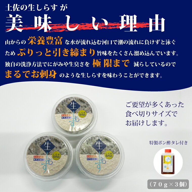 - 【ふるさと納税】 しらす 小分け 生しらす 冷凍 3個 210g 国産 ポン酢 タレ付き 海鮮 魚 シラス 刺身 ご飯 サラダ 海鮮丼 国産しらす ちりめん じゃこ シラス丼 個包装 便利 酒 おつまみ 惣菜 おかず 人気 ランキング 5000円 贈答 ギフト 高知県 安芸市