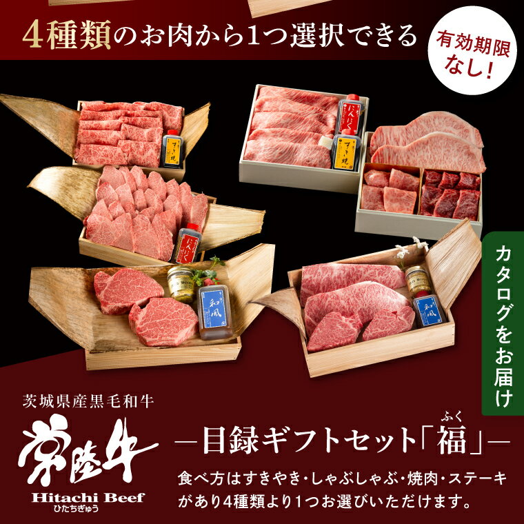 【ふるさと納税】【福】カタログギフト 特選目録 常陸牛 サーロイン フィレミニヨン シャトーブリアン すき焼き 上ロース 焼肉 焼き肉 霜降りもも厚切り700g 常陸牛肉重 小梅 お歳暮(DU-56)