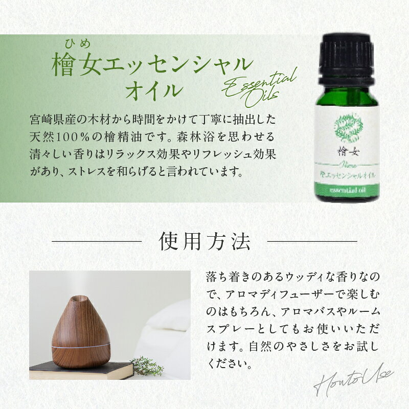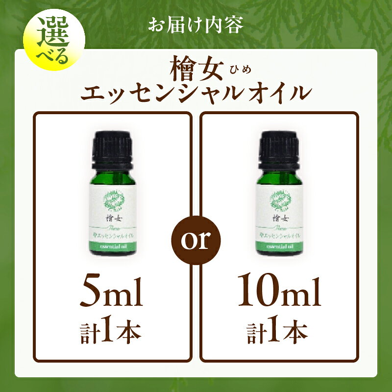 【ふるさと納税】【選べる内容量】都農町製造『檜女(ひめ) エッセンシャルオイル 』(5ml or 10ml) 計1本 檜 ヒノキ 香り 天然 リラックス リフレッシュ 国産 オーガニック アロマ フレグランス 人気 ギフト おすすめ 贈り物 プレゼント 宮崎県 都農町 送料無料