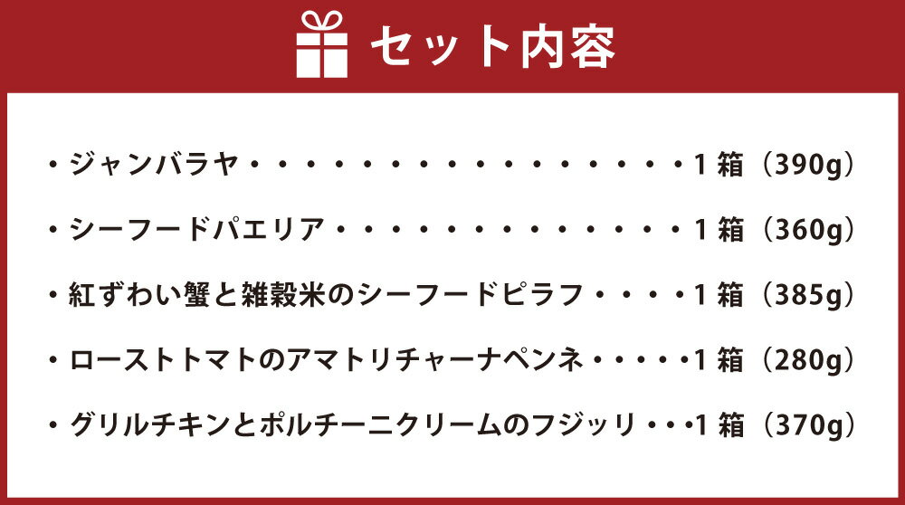 - 【ふるさと納税】レディミール アソート (全5種 計1,785g) / ジャンバラヤ パエリア ピラフ ペンネ フジッリ 米料理 マカロニ グルメ 食品 デリ 惣菜 ギフト 贈答 冷食 冷凍 ごはん ショートパスタ シーフード 魚介 グルメ 簡単調理 時短 手軽 大分県 豊後大野市 送料無料