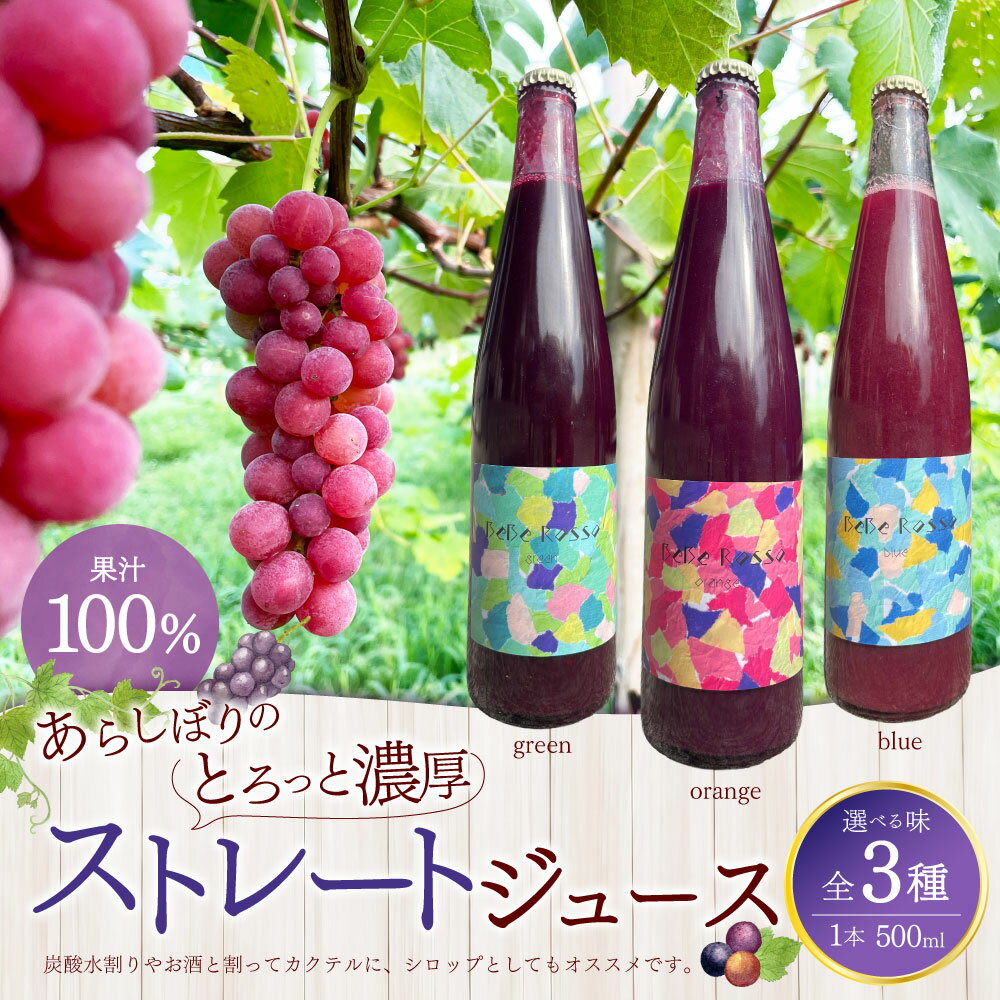 【ふるさと納税】【選べるお味】あらしぼりのとろっと濃厚、ストレートジュース 果汁100% 1本 500ml 《blue》《orange》《green》ブドウジュース ぶどう ブドウ 葡萄 ストレートジュース ジュース 飲料 冷蔵 大分県産 竹田市 送料無料
