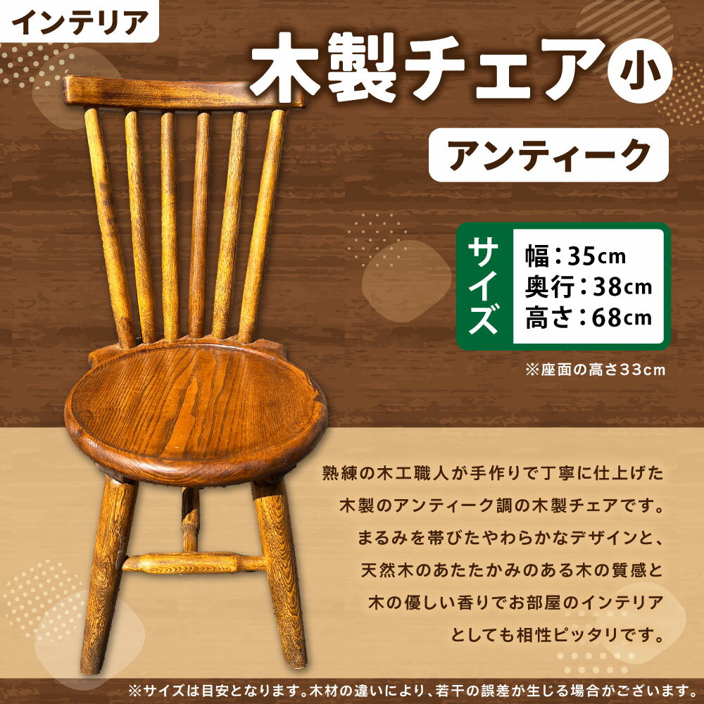 - 【ふるさと納税】アンティーク 木製チェア(小) 幅35cm×奥行き38cm×高さ68cm 座面の高さ33cm 木製 木工職人 職人 インテリア コレクション アート アート作品 イス いす 椅子 チェア 手作り 福岡県 糸田町 送料無料