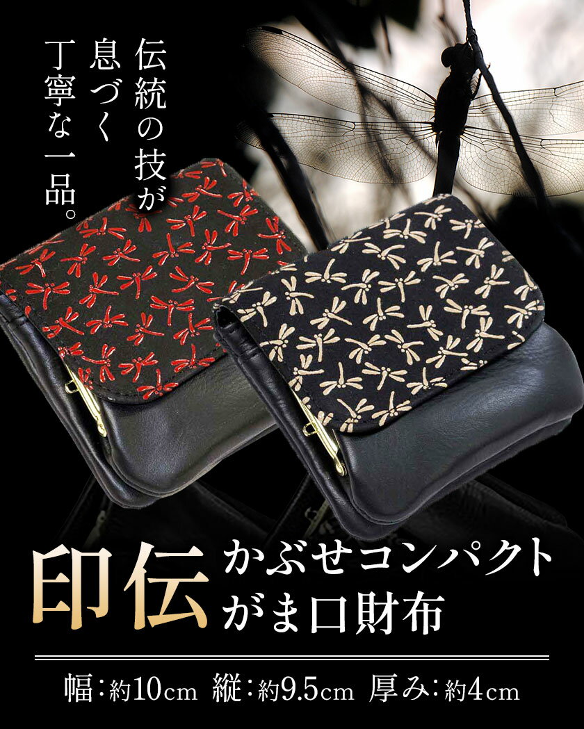 - 【ふるさと納税】財布 印伝 かぶせ コンパクト がま口 財布 レッド または ベージュ 1個 大和商品配送センター 《2026年1月下旬以降順次出荷予定(土日祝除く)》大阪府 羽曳野市 小銭 革 赤 小物 トンボ 伝統 日本