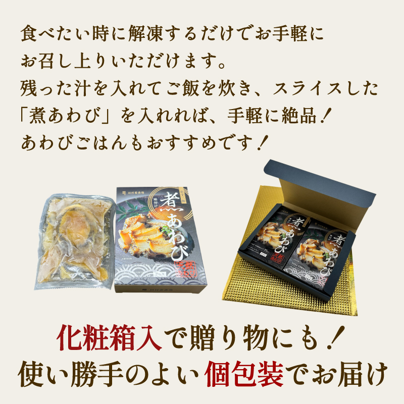 化粧箱入 煮あわび 醤油味 1枚入 2箱セット 鮑 蝦夷あわび 冷凍 あわび アワビ Abalone ステーキ バターソテー 正月 お正月 おせち 刺し身 刺身 バーベキュー BBQ ごはん 夕飯 おかず おつまみ 晩酌 米 丼 海産物 海鮮 魚介 魚介類 贈答品 プレゼント お中元 お歳暮 大船渡 三陸 岩手県 国産