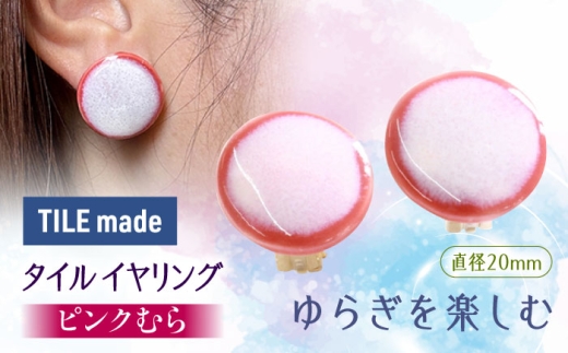 - 【美濃焼】 ピンクむら タイル イヤリング 直径20mm 瑞浪市 / TILEmade タイル アクセサリー ハンドメイド [AZCD021]