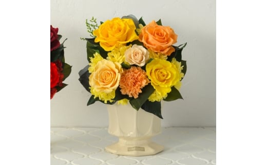 パルマ 花 お花 プリザーブドフラワー ギフト プレゼント お祝い 誕生日 お供え アレンジ インテリア 東京都 墨田区【イエロー×オレンジ】 [№5619-6328]