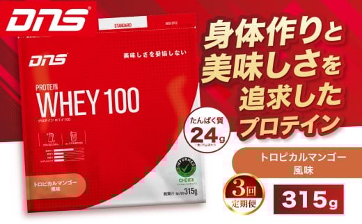 - 【定期便3回】DNS プロテインホエイ 100 トロピカルマンゴー 風味 315g | プロテイン ホエイプロテイン トロピカル マンゴー 人気 高たんぱく ダイエット 置き換え 栃木県 送料無料