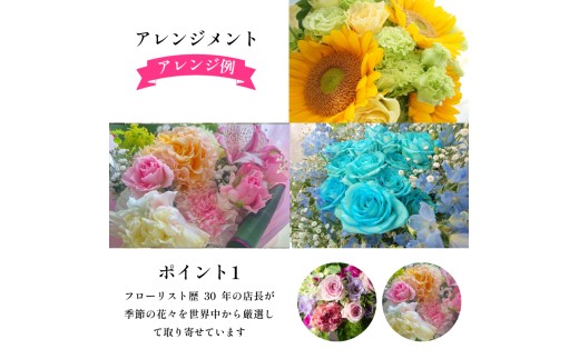 - 季節の花束 フラワーアレンジメント 定期便 3回 オリジナル手作りカード付 生花 こだわり ギフト プレゼント フラワーガーデンミモザ 花 ※北海道・東北・沖縄を含む離島への配送不可