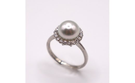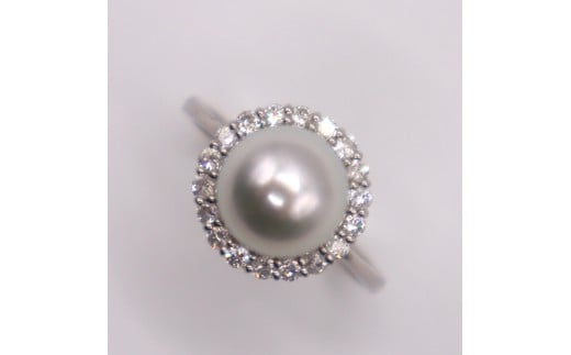 1938 Pt900 アコヤ本真珠 コバルト 8.5㎜up ダイヤモンド0.30ctリング