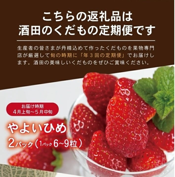 - 【3回定期便】酒田の果物専門店厳選 くだもの定期便2026 (いちご〔やよいひめ〕、アンデスメロン、幸水梨) SE0469