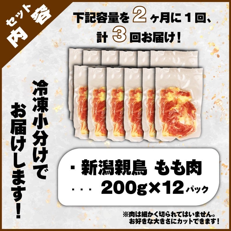 - 隔月3回 定期便 計7.2kg 親鶏 もも肉 隔月定期便 2.4kg×3回 200g×36パック 鶏肉 鶏 チキン タンパク もも 肉 とり にく お家ごはん 国産 県産 親鳥 鳥肉 精肉 父の日 ブランド鶏 鍋 汁物 郷土食 新潟親鶏 冷凍 小分け 親どり 親鳥 新潟産 新発田産 マルコ岩村 新潟県 新発田市 maruco5000